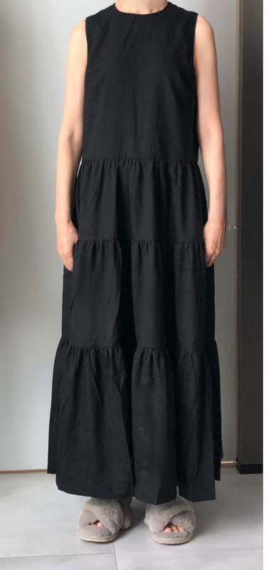 デザインについて ギャザーがたっぷりの3段ティアードスカート。 身頃は少しだけウエストを絞ってカジュアル過ぎずちょっときれい目に仕上げています。 165cmのモデル..