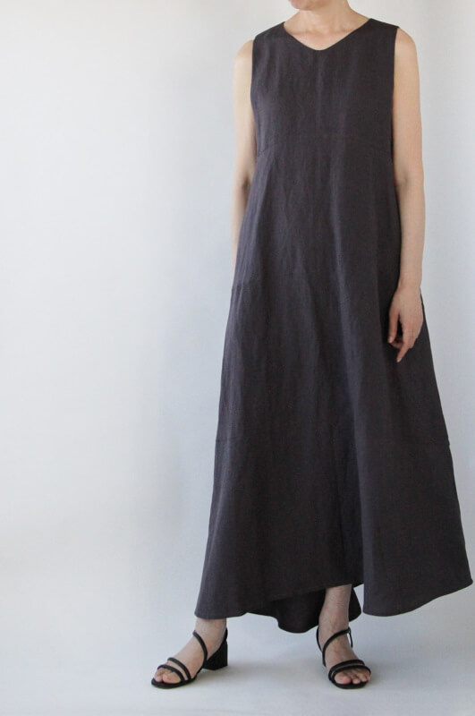 デザインについて 分量たっぷりのドレスはスタイル良く見せたいと思い身頃は少しだけウエストを削って全体の印象をきれいめに仕上げています。 165cmのモデルで足首まである..